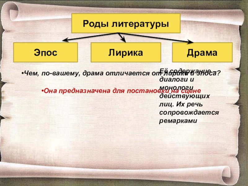 Чем, по-вашему, драма отличается от лирики и эпоса?