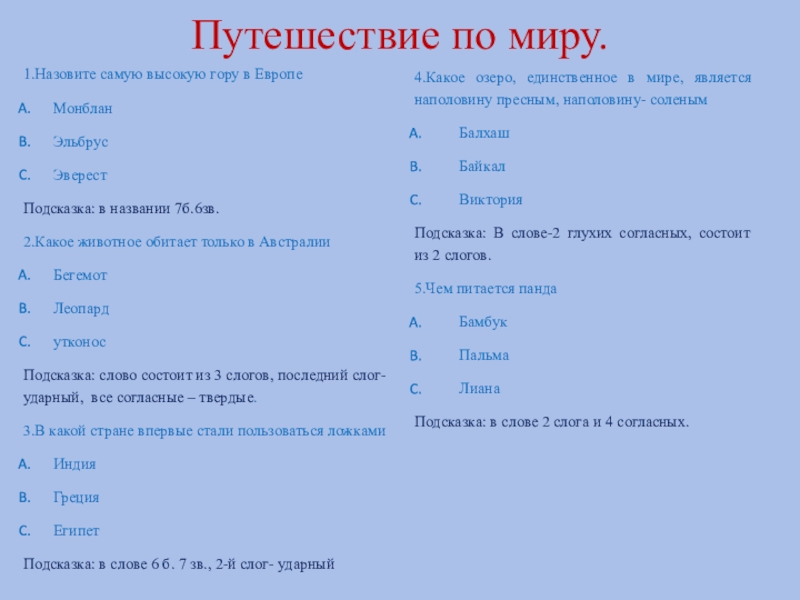 4.Какое озеро, единственное в мире, является наполовину пресным, наполовину- соленым