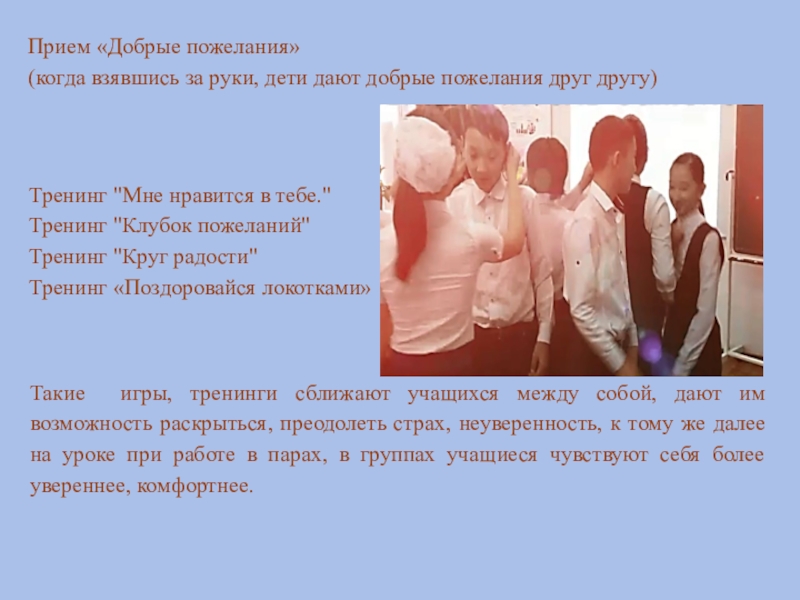 (когда взявшись за руки, дети дают добрые пожелания друг другу)