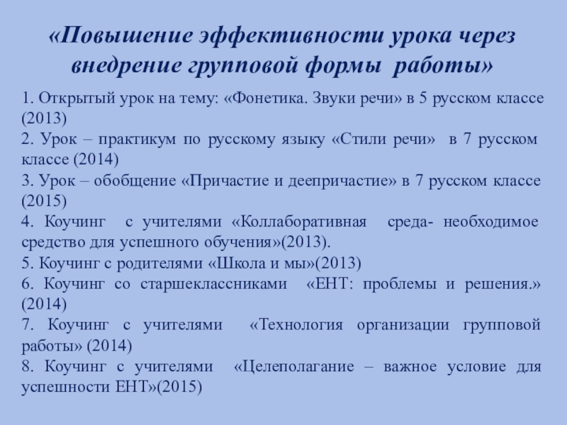 «Повышение эффективности урока через внедрение групповой формы работы»