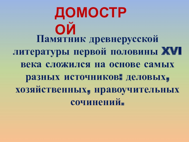2. Семейные отношения «Как в семье жить мужу, жене, детям и домочадцам» (гл. 16-29).