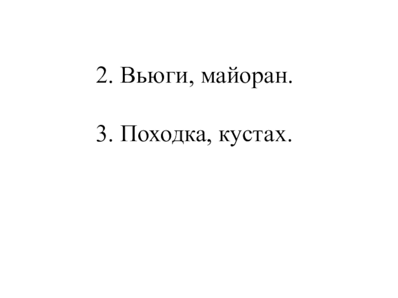 2. Вьюги, майоран.3. Походка, кустах.