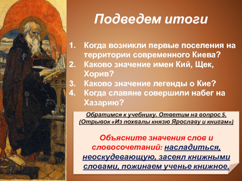 (Отрывок «Из похвалы князю Ярославу и книгам»)