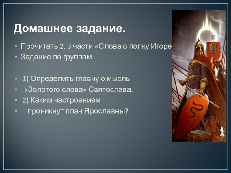 Прочитать 2, 3 части «Слова о полку Игореве».