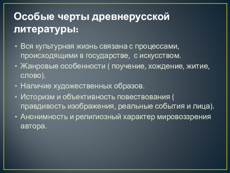 Жанровые особенности ( поучение, хождение, житие, слово).