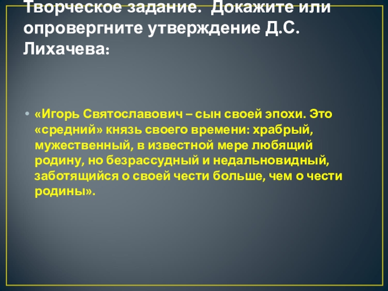 Слайд 15Творческое задание. Докажите или опровергните утверждение Д.С. Лихачева: