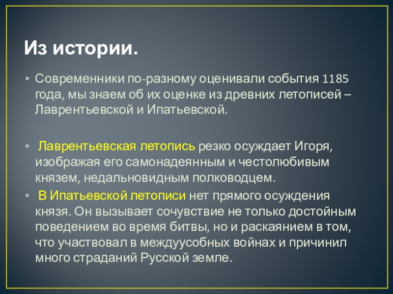 Современники по-разному оценивали события 1185 года, мы знаем об их