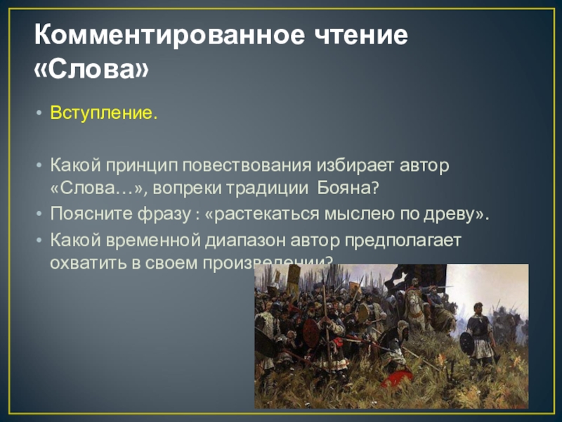 Какой принцип повествования избирает автор «Слова…», вопреки традиции Бояна?