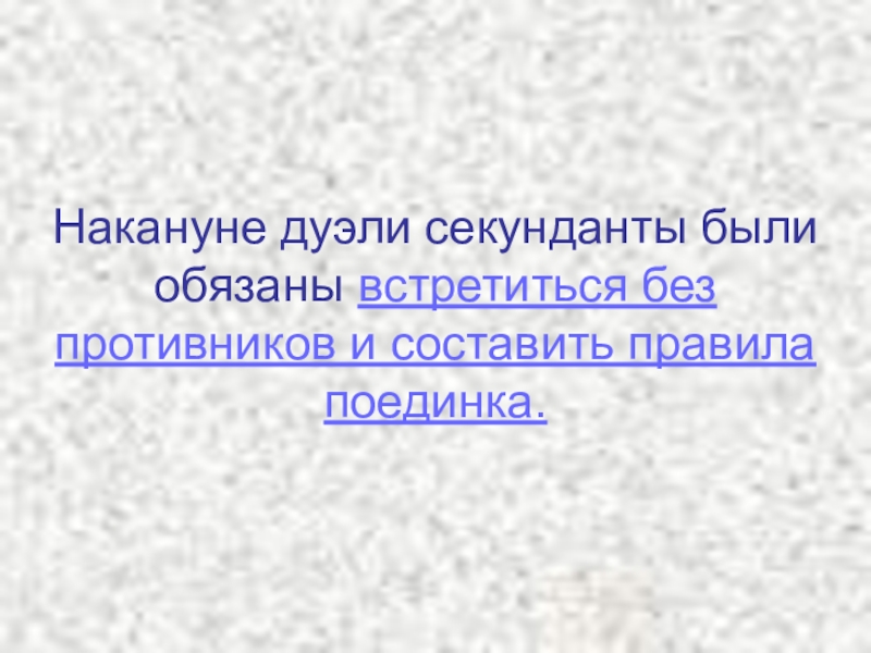 Слайд 14 Накануне дуэли секунданты были обязаны встретиться без противников и составить правила