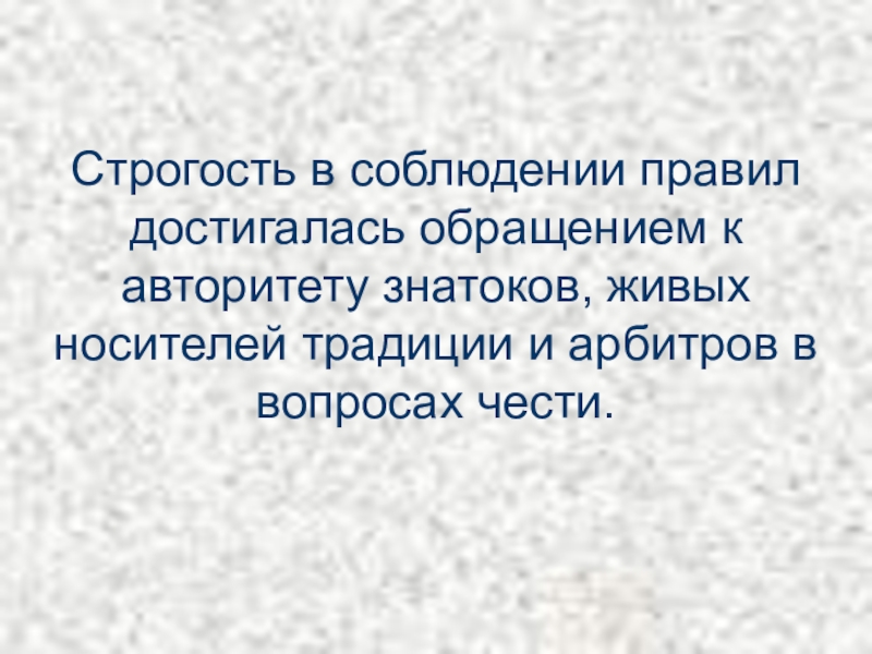 Слайд 7 Строгость в соблюдении правил достигалась обращением к авторитету знатоков, живых носителей