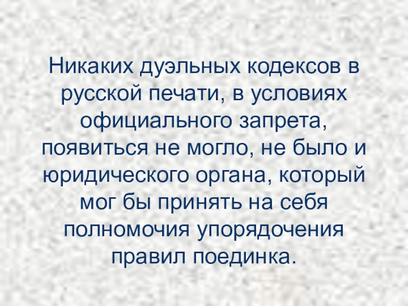 Слайд 6 Никаких дуэльных кодексов в русской печати, в условиях официального запрета, появиться