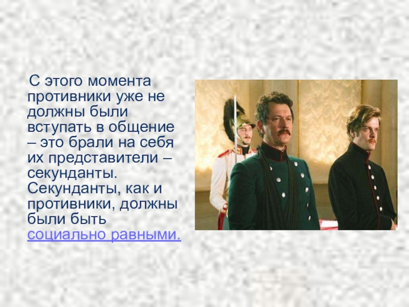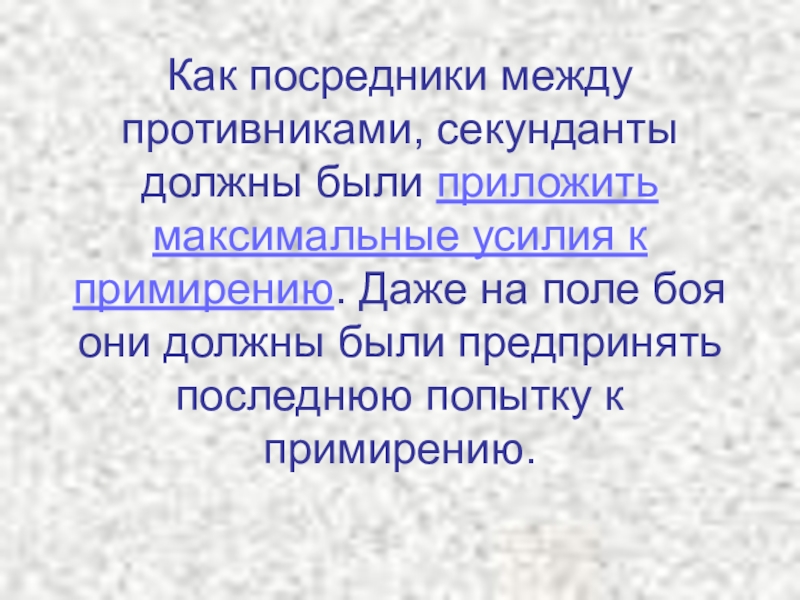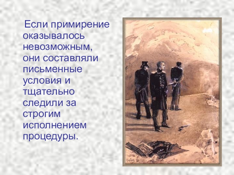 Слайд 12 Как посредники между противниками, секунданты должны были приложить максимальные усилия к
