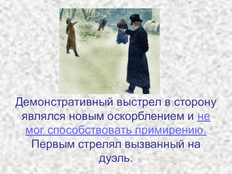 Слайд 16 Демонстративный выстрел в сторону являлся новым оскорблением и не мог способствовать