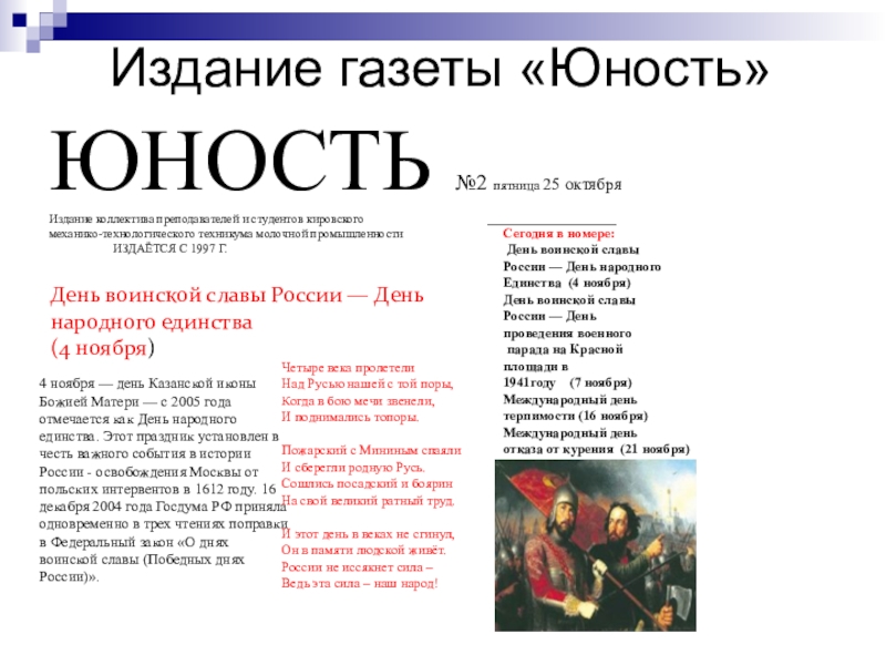 Слайд 40Издание газеты «Юность»