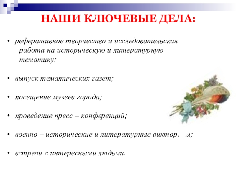 Слайд 21НАШИ КЛЮЧЕВЫЕ ДЕЛА: