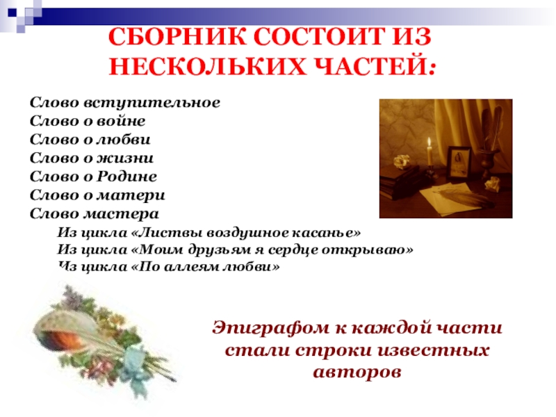 Эпиграфом к каждой части стали строки известных авторов