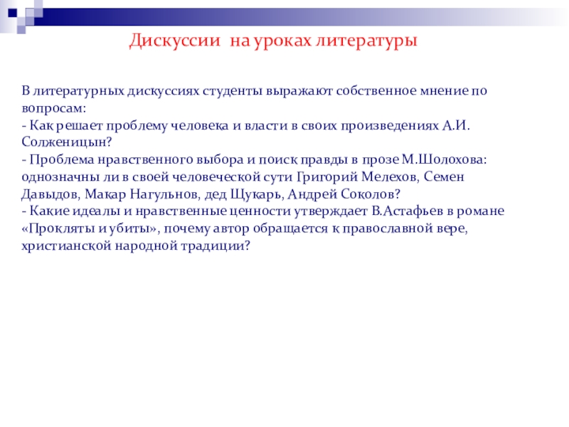 Слайд 12В литературных дискуссиях студенты выражают собственное мнение по вопросам: