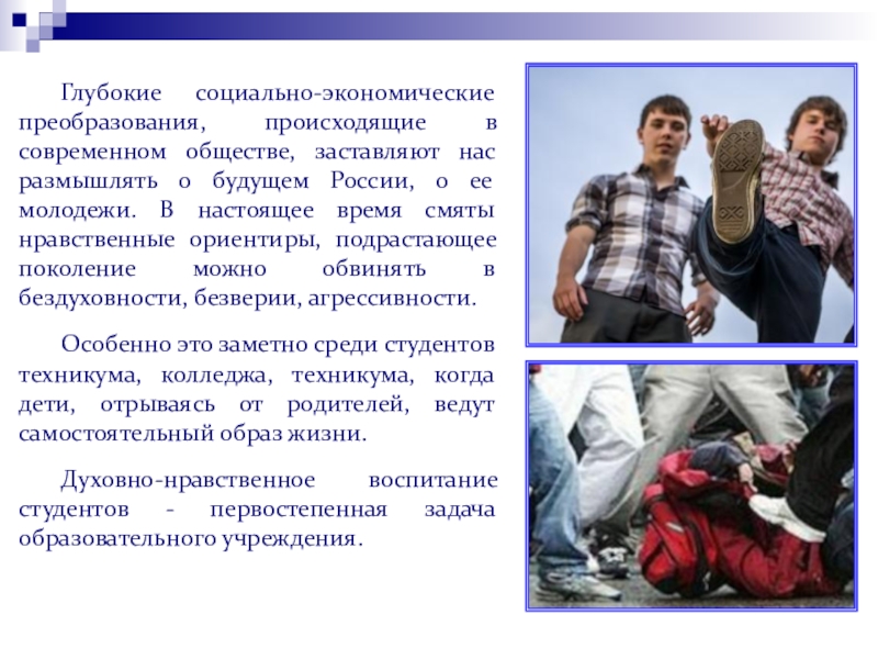 Слайд 2Глубокие социально-экономические преобразования, происходящие в современном обществе, заставляют нас размышлять о