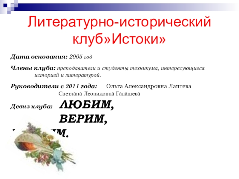 Литературно-исторический клуб»Истоки»