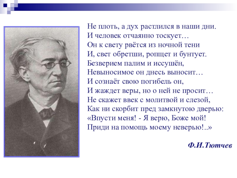Слайд 3Не плоть, а дух растлился в наши дни.