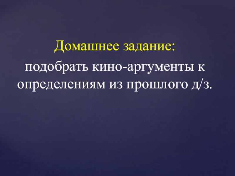 Домашнее задание:подобрать кино-аргументы к определениям из прошлого д/з.
