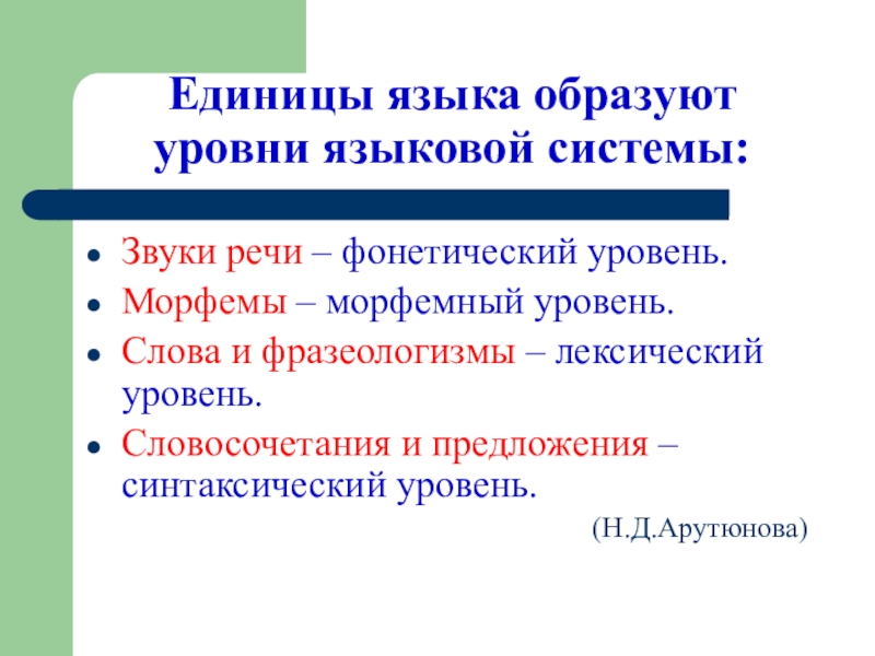 К основным единицам языка относят: звуки речи, морфемы (части слова), предложения.