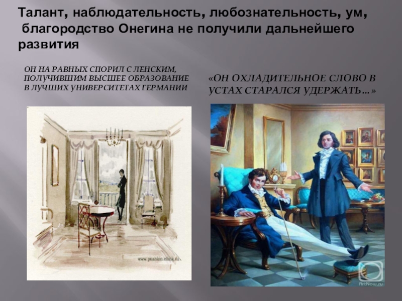 4. Талант, ум, наблюдательность, любознательность, благородство, не получившие дальнейшего развития.