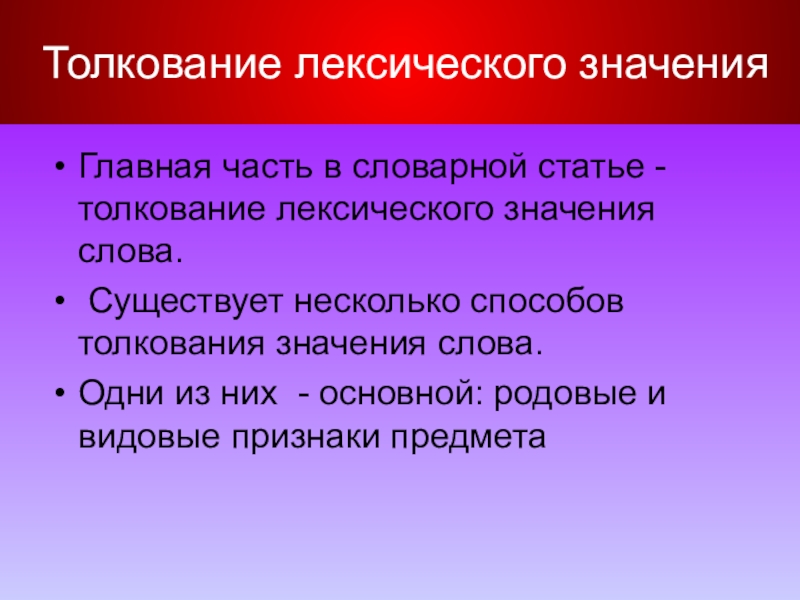 Толкование лексического значения слова