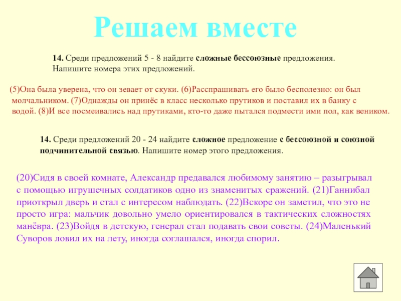 14. Среди предложений 5 - 8 найдите сложные бессоюзные предложения.