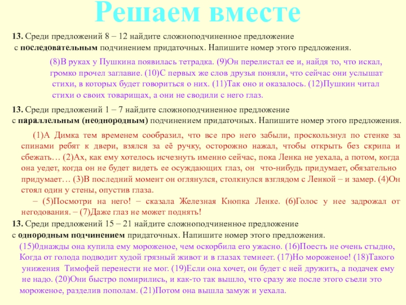 13. Среди предложений 8 – 12 найдите сложноподчиненное предложение
