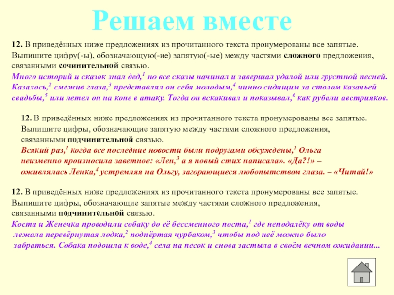 12. В приведённых ниже предложениях из прочитанного текста пронумерованы все запятые.