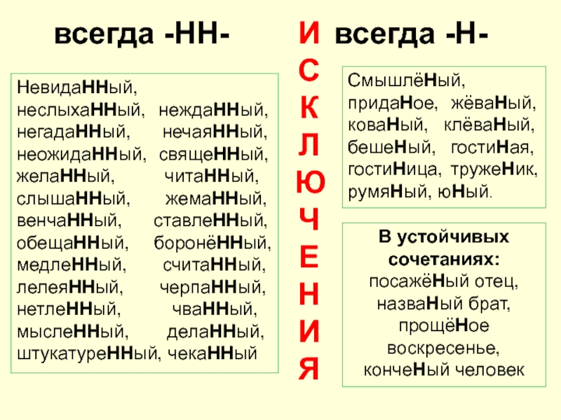 5. Правописание –Н- и –НН- в суффиксах различных частей речи