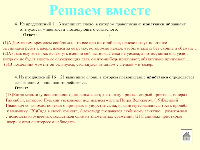 4. Из предложений 16 – 21 выпишите слово, в котором правописание приставки определяется