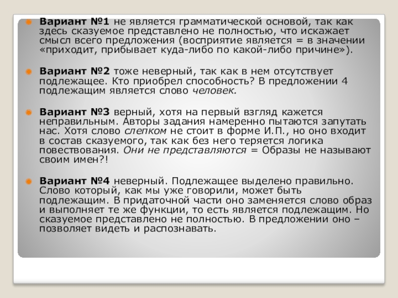 Слайд 19Вариант №1 не является грамматической основой, так как здесь сказуемое представлено