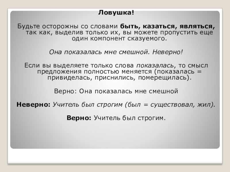 Будьте осторожны со словами быть, казаться, являться, так как, выделив только