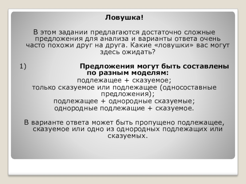 2) В варианте ответа могут сочетать подлежащее и сказуемое разных грамматических основ.
