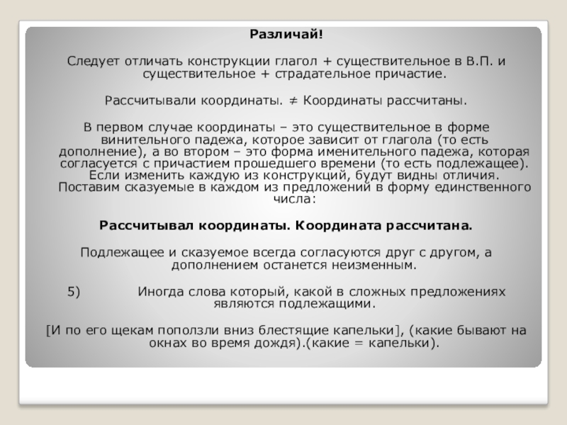 Рассчитывали координаты. ≠ Координаты рассчитаны.