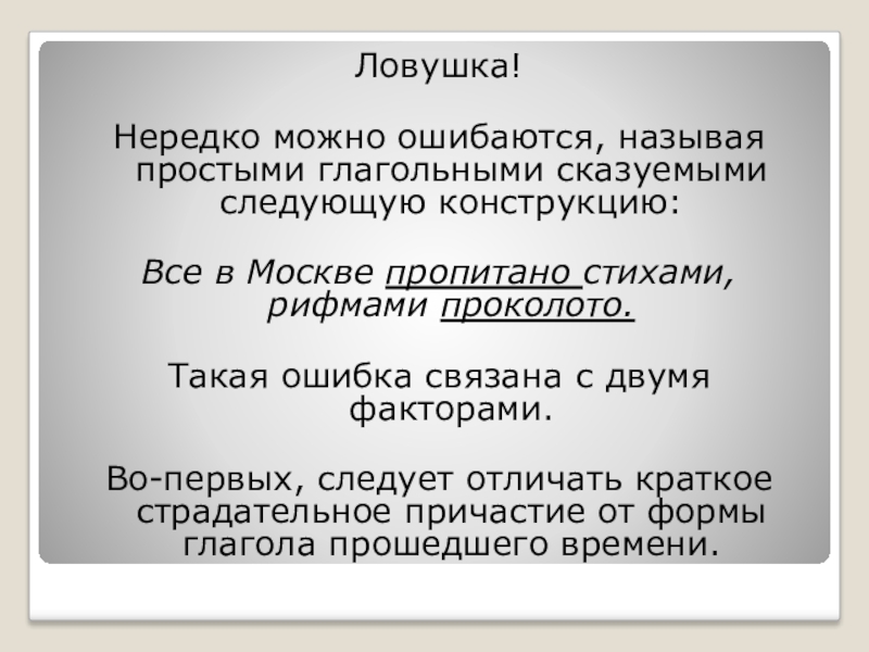 Нередко можно ошибаются, называя простыми глагольными сказуемыми следующую конструкцию: