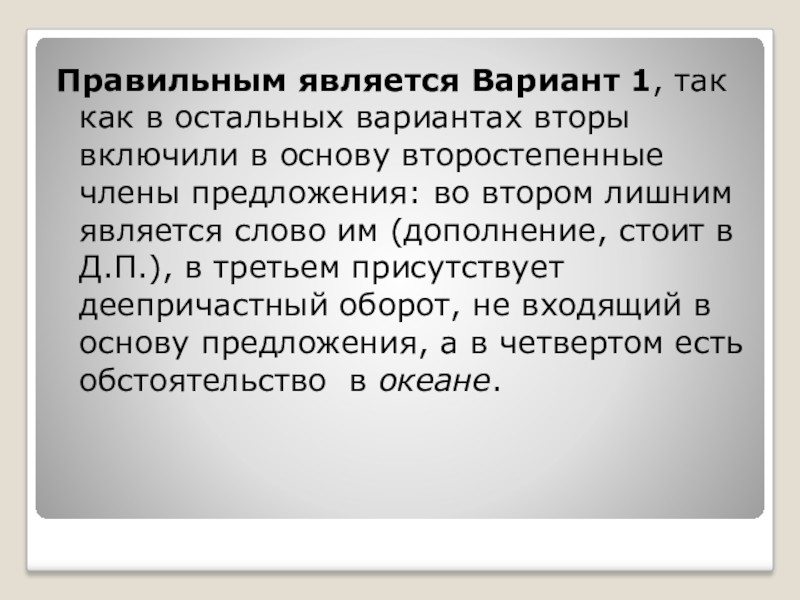 Слайд 21Правильным является Вариант 1, так как в остальных вариантах вторы включили