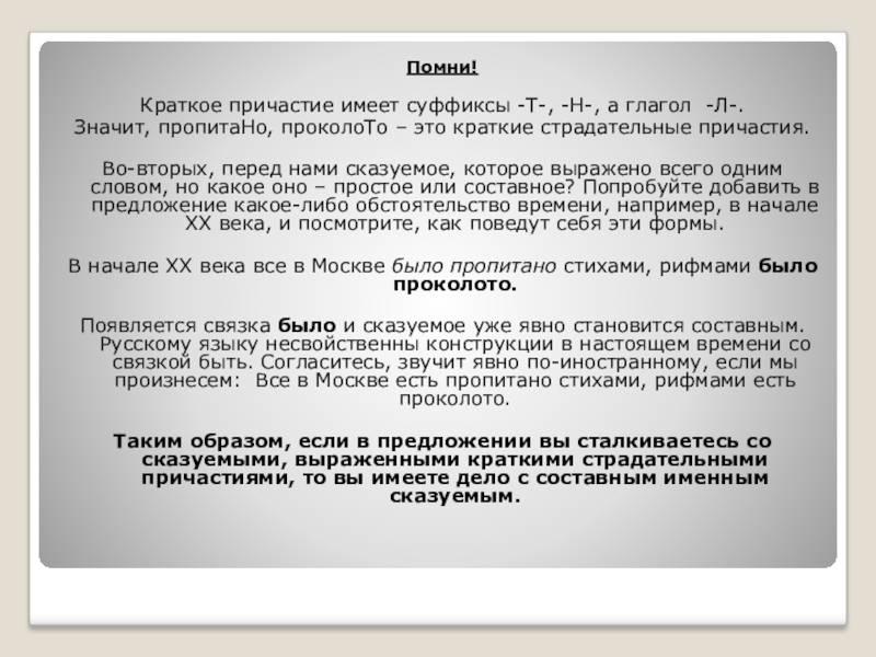 Таким образом, если в предложении вы сталкиваетесь со сказуемыми, выраженными краткими страдательными причастиями, то вы имеете дело с составным именным сказуемым.
