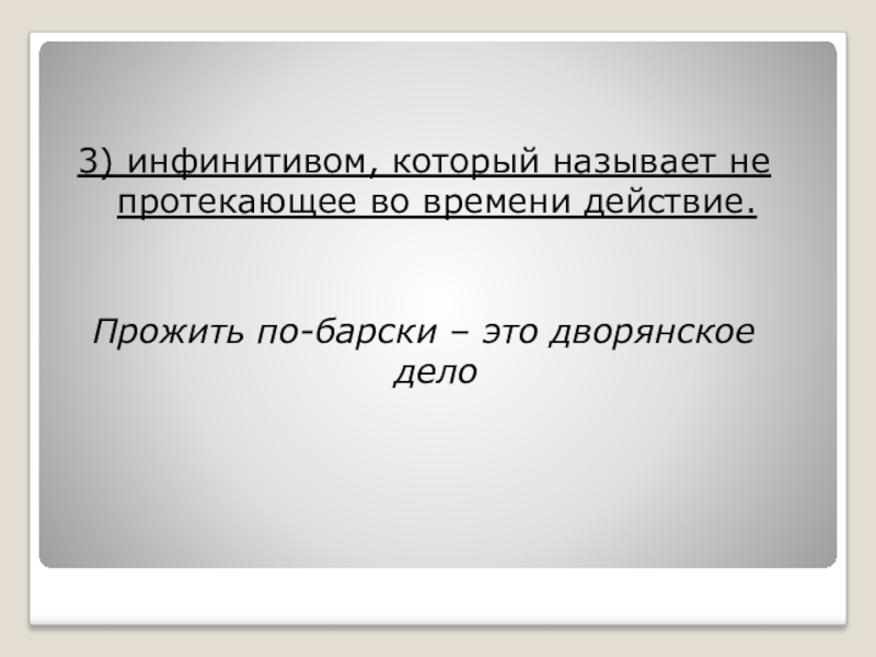 Слайд 73) инфинитивом, который называет не протекающее во времени действие.