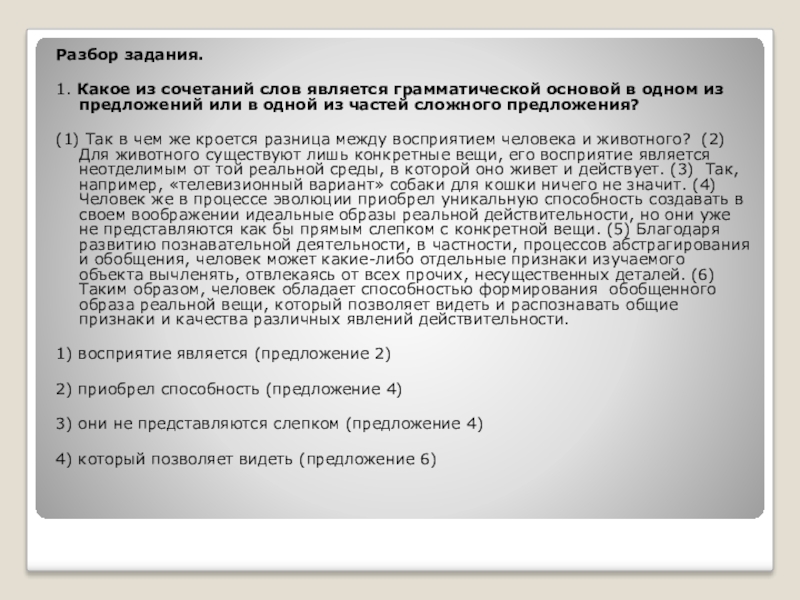 Слайд 202. Какие слова являются грамматической основой в шестом (6) предложении текста?