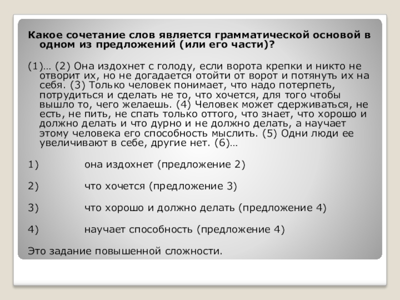 Слайд 22Какое сочетание слов является грамматической основой в одном из предложений (или