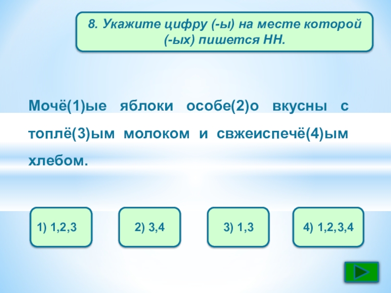 Мочё(1)ые яблоки особе(2)о вкусны с топлё(3)ым молоком и свжеиспечё(4)ым хлебом.