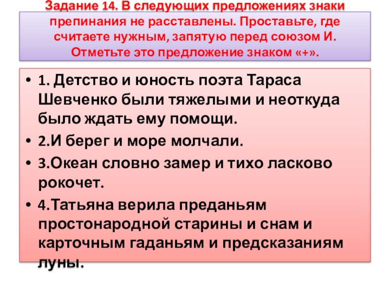 4.Татьяна верила преданьям простонародной старины и снам и карточным гаданьям и предсказаниям луны.