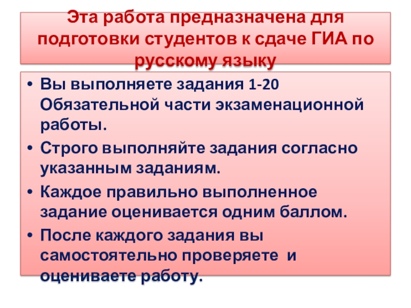 Вы выполняете задания 1-20 Обязательной части экзаменационной работы.