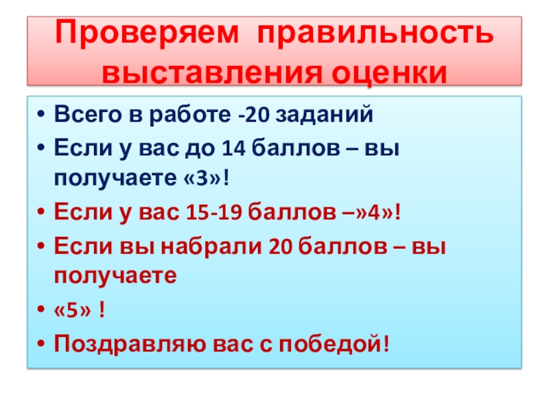 После каждого задания вы самостоятельно проверяете и оцениваете работу.