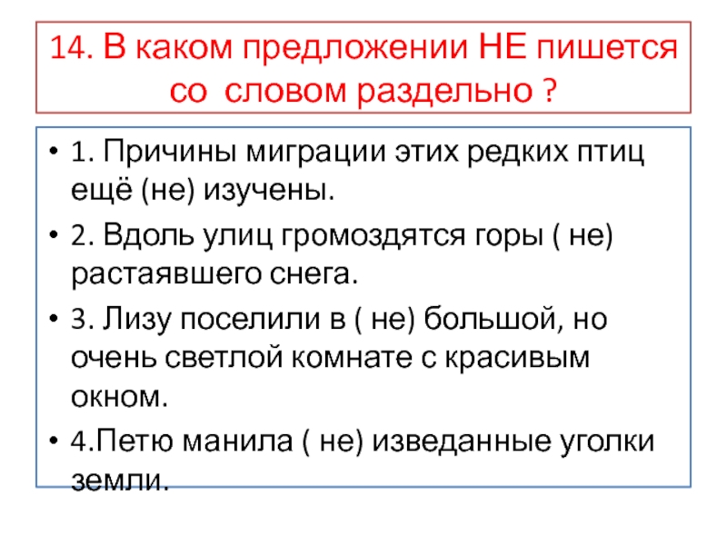 Слайд 2114. В каком предложении НЕ пишется со словом раздельно ?