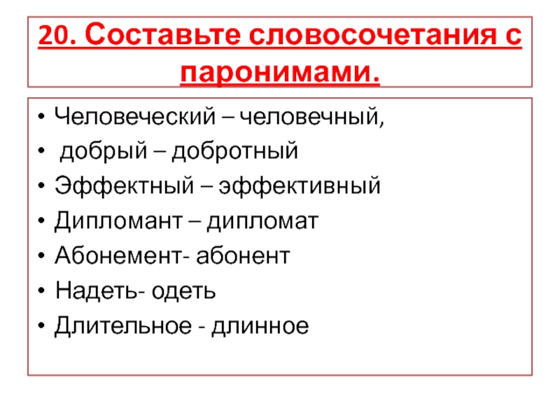 Прокомментируйте устно значение паронимов в словосочетаниях.