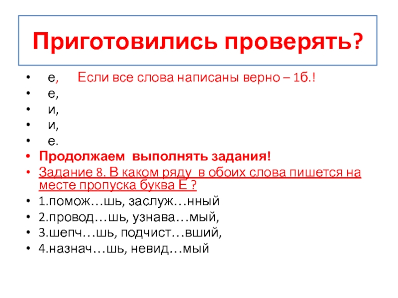Задание 8. В каком ряду в обоих слова пишется на месте пропуска буква Е ?